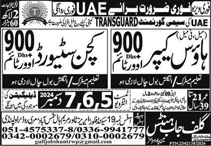 If you are looking for the Overseas job at UAE or in the vicinity of the UAE with the educational eligibility of Middle | Matric then you are lucky and on the right page because here we have shared the latest House Keeper & Kitchen Steward Jobs 2024 In UAE. The job has been posted on 05 December, 2024 and the last date to apply for the job is 07 December, 2024or as per paper ad. Do remember that this is a Full Time job.